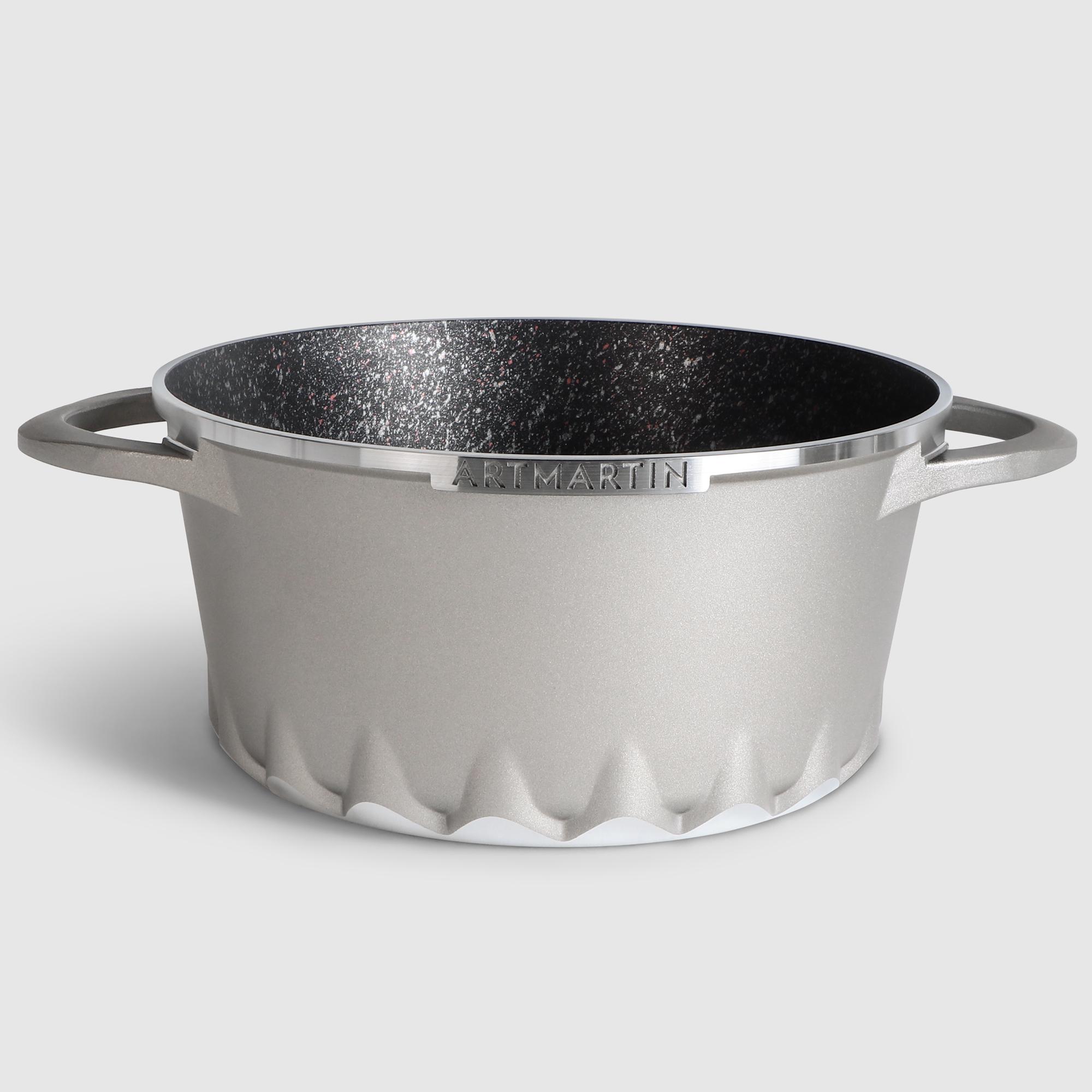 Кастрюля с крышкой 26 см обьемом 5,7 литра изготовлена из литого алюминия, устойчива к царапинам и износу. У кухонной посуды имеет ферромагнитную пластину, благодаря чему возможно использование на индукционных плитах. Толщина дна в 5 мм не позволит вашему блюду пригореть и сохранит первоначальный внешний вид посуды без деформации. Антипригарное покрытие полностью безопасно, так как не содержит опасных примесей. Крышка кастрюли с нержавеющим ободком и пароотводом. Кастрюля с крышкой подойдет для всех типов плит.