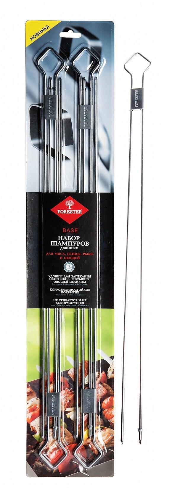 V-образная конструкция двойных шампуров Forester RZ-500UB удобна для равномерной прожарки куриных ножек и окорочков, рыбы, ребрышек и овощей целиком. Однако и мелкие продукты, такие как креветки или тонко порезанные овощи, готовить будет несложно. Двойной шампур надежно фиксирует приготавливаемый на гриле продукт, чтобы он не вращался при переворачивании. Поэтому вам будет легко контролировать процесс обжарки с двух сторон, не беспокоясь о том, что ингредиенты могут неравномерно прожариться или провалиться на угли. Прочные двойные шампуры для шашлыка не сгибаются и не деформируются под тяжестью нанизанных больших кусков мяса. Коррозионностойкое покрытие поверхности изделий обеспечивает им длительный эксплуатационный срок. Набор двойных шампуров позволит вам полноценно насладиться аппетитными блюдами собственного приготовления во время приятного досуга на природе.