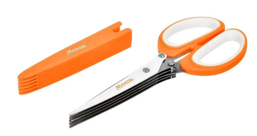 Ножницы для зелени Marmiton, 16141, 21,5х8,5х2 см, 5 пар лезвий. Ускоряют нарезку зелени в 5 раз. Материал: Нержавеющая сталь, полипропилен.