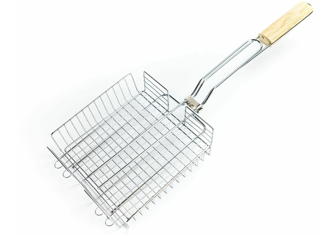 Удобная ручка выступает гарантом безопасности. Продуманная конструкция позволит хорошо прожарить любые продукты вне зависимости от формы. Покрытие не даст пище пригореть и прилипнуть к прутьям. Во время нагрева не выделяются вредные вещества, материал не токсичен и прост в уходе. Легко отмыть решетку после использования специальной щеткой.