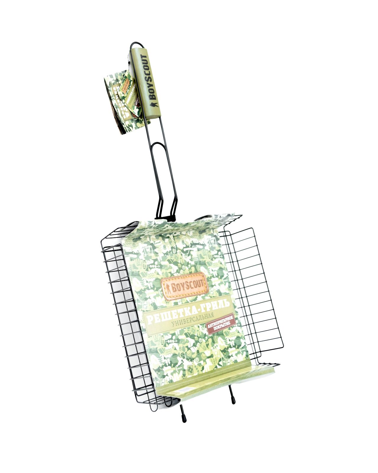 Решетка-гриль предназначена для приготовления мяса, рыбы, курицы, овощей на открытом огне. Решетка барбекю изготовлена из высококачественной стали и имеет антипригарное покрытие, дополнена деревянной ручкой с фиксирующим кольцом для надежной фиксации верхней створки решетки. Деревянная рукоятка позволяет держать решетку без риска получить ожог. Размер рабочей поверхности 30х25 см. В подарок прилагается картонный веер. Для очистки решетки, не использовать абразивные чистящие средства или грубые предметы, чтобы не повредить антипригарное покрытие.