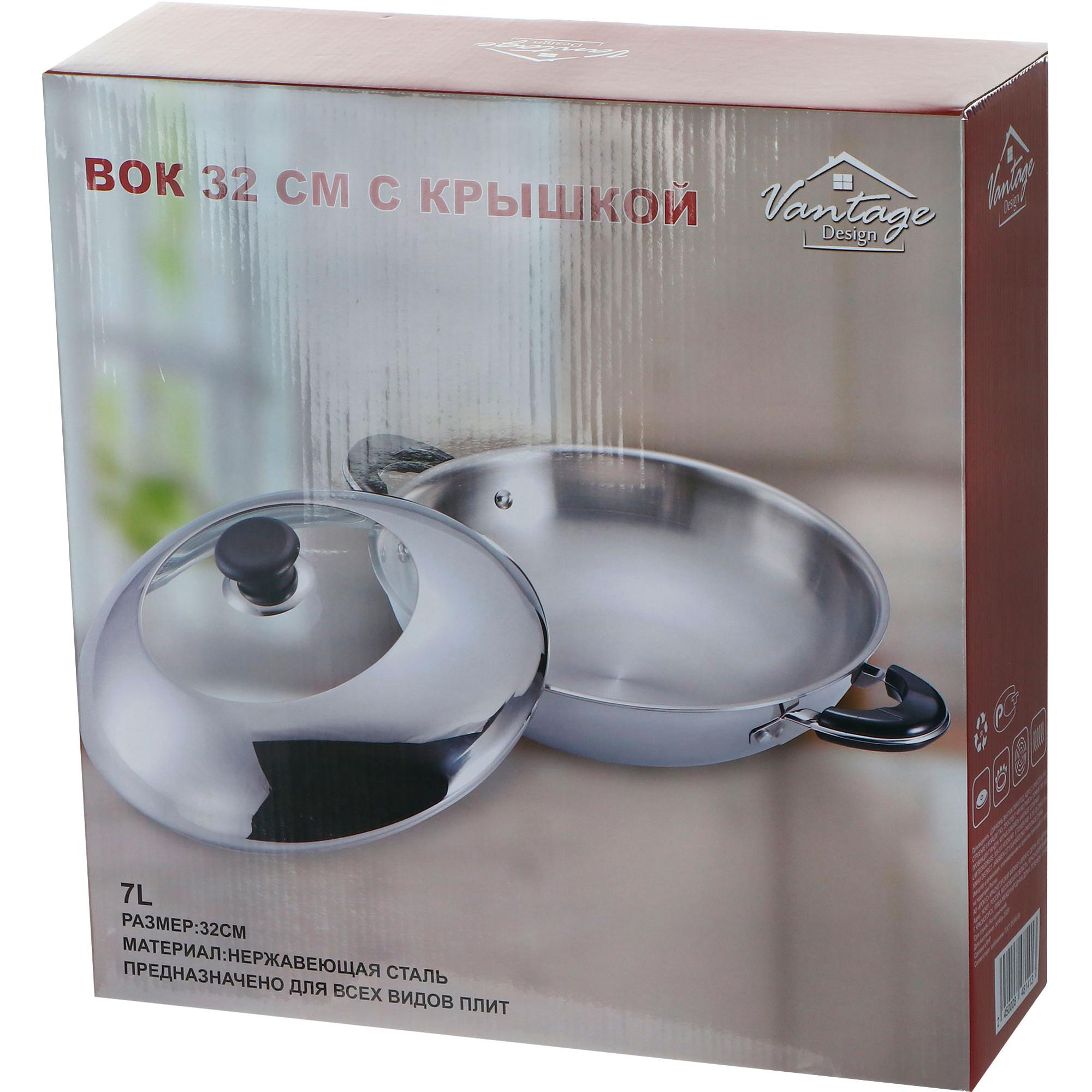 Вок бренда Vantage изготовлен из нержавеющей стали, благодаря чему, несмотря на высокий уровень прочности и долговечности, он легок и не требует особого ухода. Трехслойные толстые стенки и дно с внутренней прослойкой из алюминия гарантируют отсутствие деформации и сильного перегрева. Стальная крышка со стеклянной вставкой и пластиковые держатели в ручках добавляют эргономичности и удобства во время готовки.
