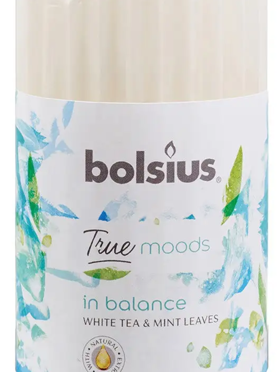 Свеча-столбик "Bolsius" с ароматом белого чая и листьев мяты из уникальной ароматической линейки "True Moods" создаст уютную атмосферу в Вашем доме. Декоративное изделие выполнено из натурального высокоочищенного парафина, а фитиль из натурального хлопка, что означает отсутствие копоти. Свеча идеально подойдет в качестве подарка близкому человеку. Время горения составляет 33 часа. Бренд "Bolsius" уже 150 лет радует своих покупателей качественными и безопасными продуктами. Фабрики в Европе сертифицированы по ISO9001 и BRC Global стандартам. Выпускаемая продукция имеет высший стандарт качества "А".