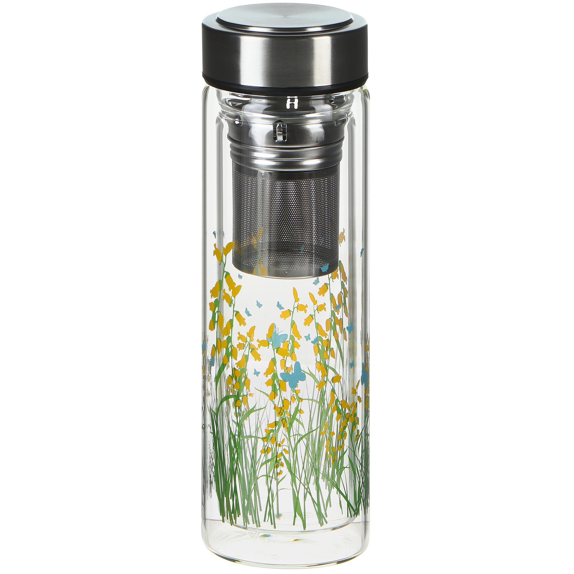 Уникальная посуда для напитков от Everblooming выполнена из боросиликатного стекла с аксессуарами из стали. Двойное стекло обеспечивает оптимальную температуру напитка без нагрева внешних стенок. Бутылка со специальным ситечком обеспечивает правильный температурный режим для заваривания чая и трав без особых усилий и позволяет длительное время держать напиток горячим и ароматным. Преимущества: инновационный дизайн, качественные товары