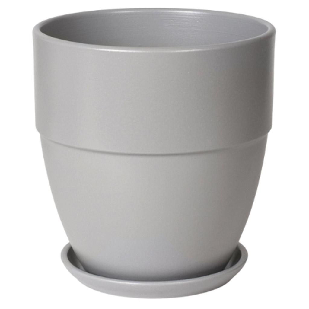 Горшок с поддоном «Аллой» — это декоративная емкость из эмалированной керамики, предназначенная для использования в интерьере дома и в садовом дизайне. Внутренний объем — 3.4 л. Диаметр — 18 см.