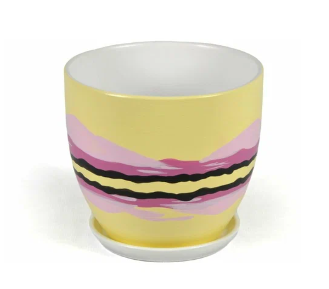 Керамический горшок для цветов. Классическая конструкция: горшочек с отверстием и блюдце для поддержания оптимальной влажности почвы. Керамика - дышащий и экологически чистый материал, являющийся "вечной классикой", а яркие цвета подойдут к любому интерьеру.