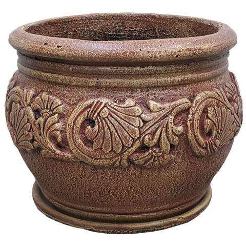 Большой садовый горшок коричневого цвета. Покрыт стойкой акриловой краской. Имеется дренажное отверстие. Подходит для уличного размещения. Изготовлен из композитного бетона.