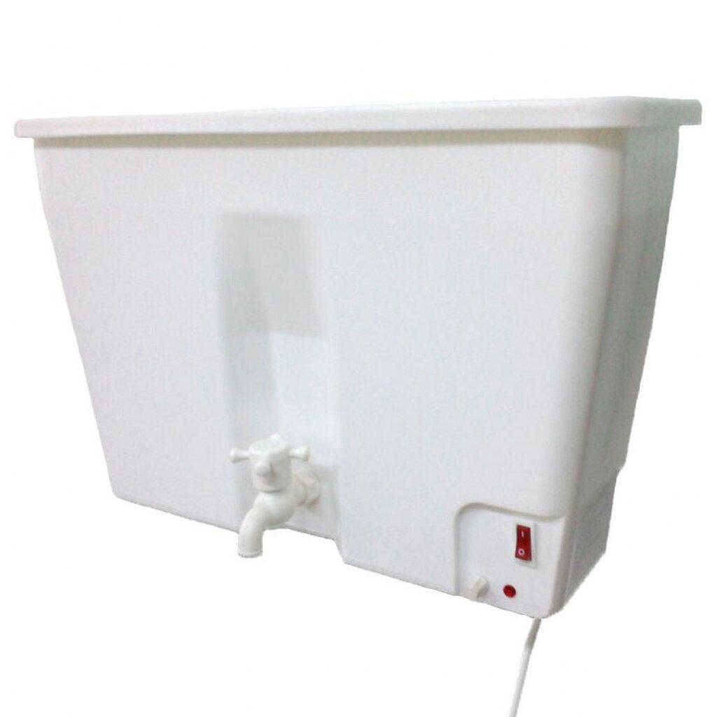 Объем бака 22 литра, что равно четырем пятилитровым кастрюлям. Этого обычно хватает, чтобы умыться, помыть руки и грязную посуду.