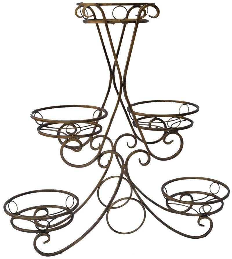 Подставка предназначена для размещения цветочных кашпо. Кованая подставка поможет организовать пространство. Данный вид стоек можно разместить не только в комнате, но и на открытой веранде, так как они долговечны и покрываются специальным антикоррозийным составом. В отопительный сезон кашпо с цветами, при помощи подставки, можно поставить поодаль от батареи, где воздух сухой и жаркий, но в то же время в зоне хорошего освещения. Металлическая подставка - это хороший вариант для цветов с длинными гибкими ветками и листьями, свисающими вниз. Преимущества: - высокая прочность материала; - устойчивая конструкция способна выдержать как маленькие, так и большие экземпляры домашней флоры; - кованые подставки под растения более долговечны. Материал: металл. Размер: H-94*94 см. Изображение товара может не соответствовать внешнему виду.