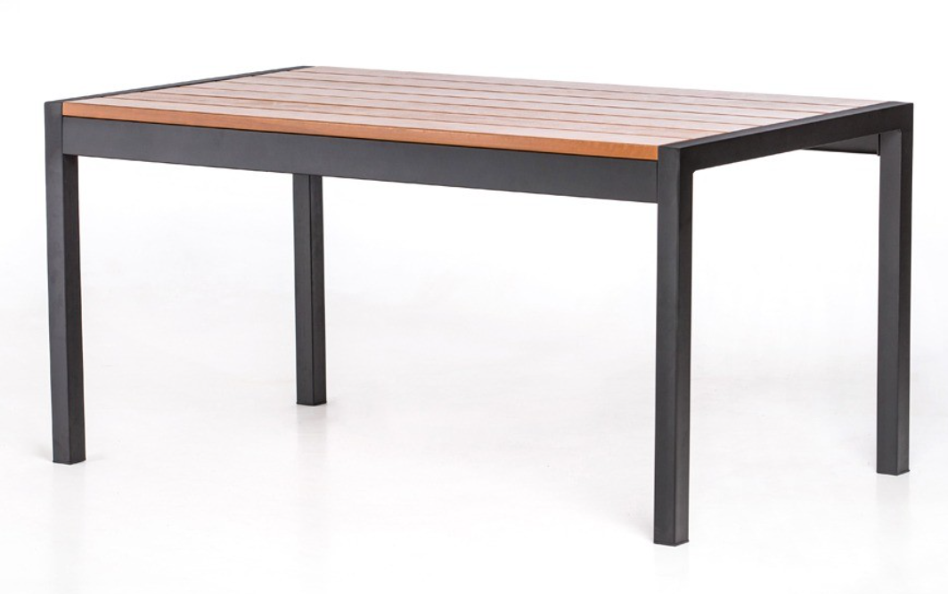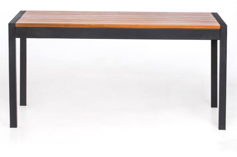 Полноразмерный стол из стали и дерева. Легко собирается, прекрасно дополняет современный ландшафтный дизайн. Каркас окрашен порошковой краской. Древесина обработана антисептиком и покрыта яхтным лаком.