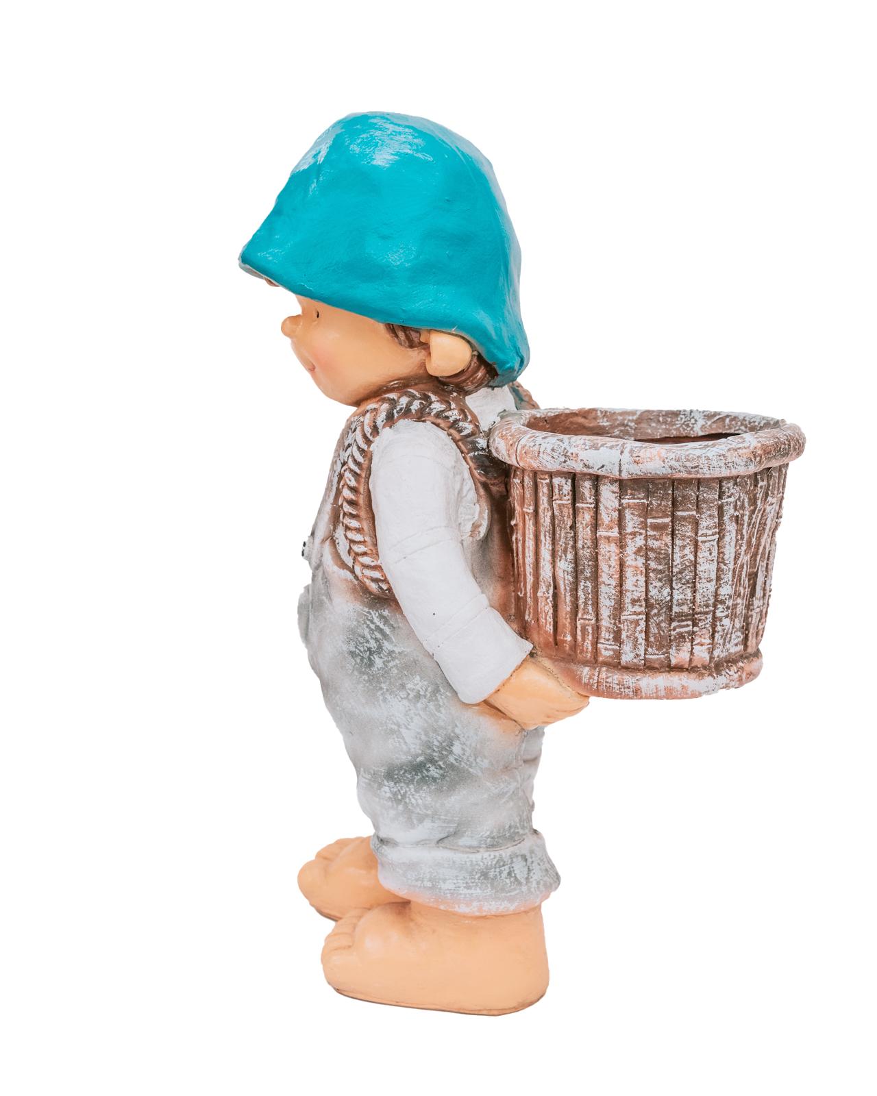 Садовая фигура «Мальчик кашпо» - это интересное, декоративное решение, выполняющее сразу несколько функций: практическую, эстетическую, развлекательную. Такая статуэтка отлично впишется в Ваш интерьер в качестве декоративного элемента. Садовая фигура из полистоуна легко переносит любые атмосферные воздействия в виде дождя, града, снега, температуру широкого диапазона: от - 50 до + 180 градусов, не реагирует на высокую или низкую влажность, устойчива к солнечному излучению. С помощью фигуры для сада даже самую стандартную дачу можно преобразить в сказочный уголок.