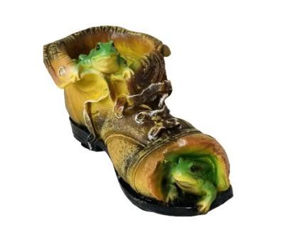 Садовая фигурка-кашпо "Башмак с лягушками Н-15см, D-9см.". Размер фигурки: высота 15 см, длина 27 см, ширина 15 см. Вес фигурки 0,9 кг. Диаметр кашпо 9 см. Фигурка изготовлена из искусственного камня полистоуна, который сочетает в себе все качества природного материала. Изделия из полистоуна отличаются повышенной прочностью и износостойкостью, они устойчивы к воздействию влаги, ультрафиолетовых лучей и других разрушающих факторов внешней среды, а используемые при создании фигурок лакокрасочные материалы устойчивы к перепаду температур и погодным осадкам. Садовые фигурки из полистоуна станут украшением Вашего садового участка и придадут ему неповторимый вид.