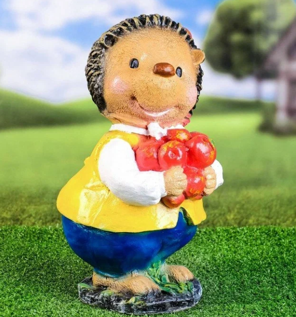 Садовая фигурка "Еж мультяшный с яблоками Н-38см". Размер фигурки: высота 38 см, длина 23 см, ширина 20см. Вес фигурки 1,9 кг. Фигурка изготовлена из искусственного камня полистоуна, который сочетает в себе все качества природного материала. Изделия из полистоуна отличаются повышенной прочностью и износостойкостью, они устойчивы к воздействию влаги, ультрафиолетовых лучей и других разрушающих факторов внешней среды, а используемые при создании фигурок лакокрасочные материалы устойчивы к перепаду температур и погодным осадкам. Садовые фигурки из полистоуна станут украшением Вашего садового участка и придадут ему неповторимый вид.