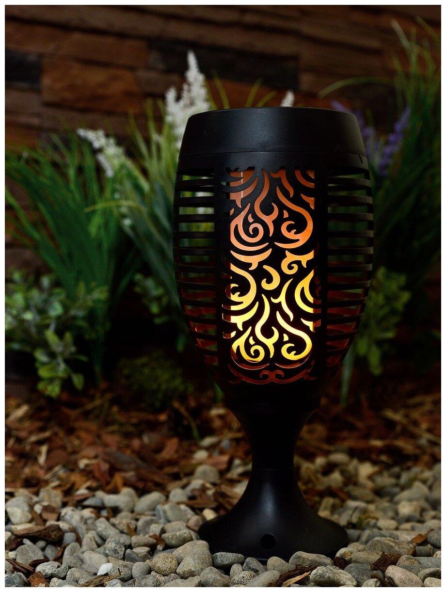 Садовый светильник на солнечной батарее в виде факела и с эффектом свечения в виде пламени. В комплекте несколько вариантов крепления для светильника. Грунтовый светильник с оригинальным и декоративным внешним видом плафона создаст уютную атмосферу на Вашем садовом участке. Степень защиты выполнена по технологии IP44.