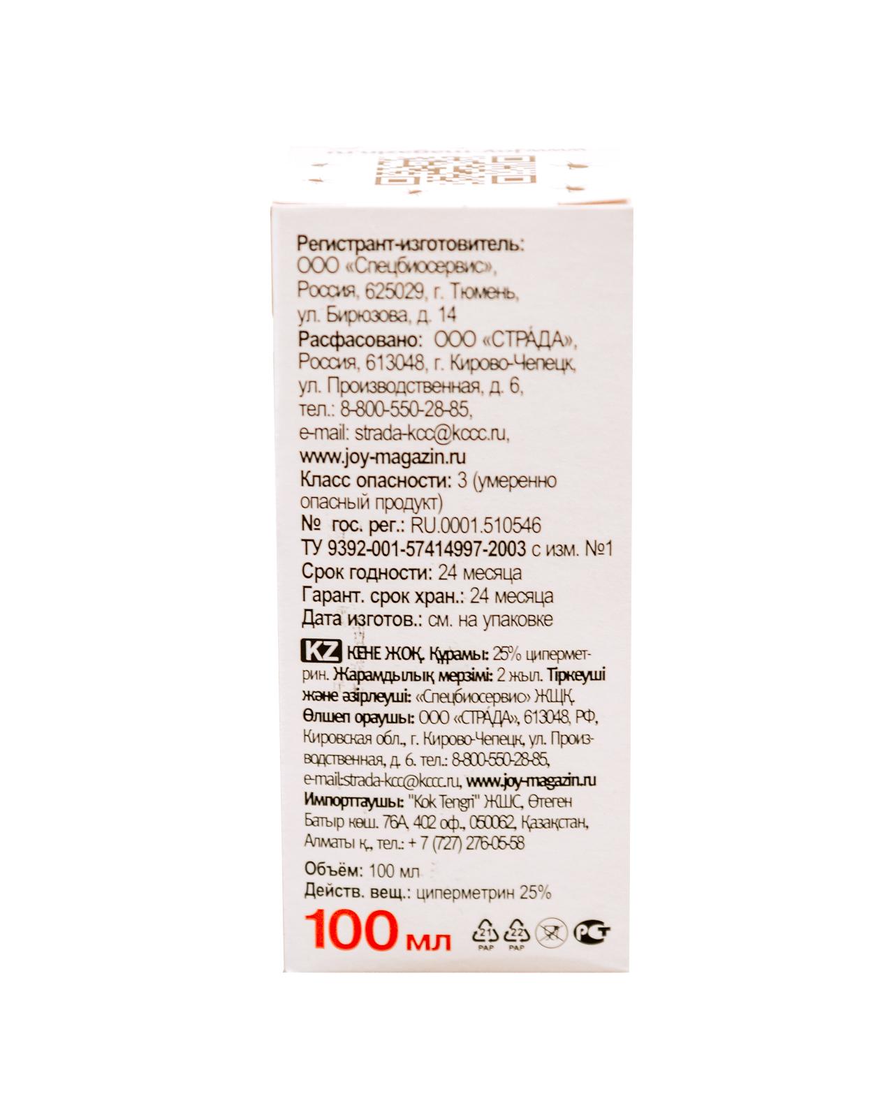 Средство JOY Бриз Клеща нет предназначено для эффективного контроля за клещами. Обладает умеренной степенью опасности (класс 3) и представляет собой прозрачное средство.