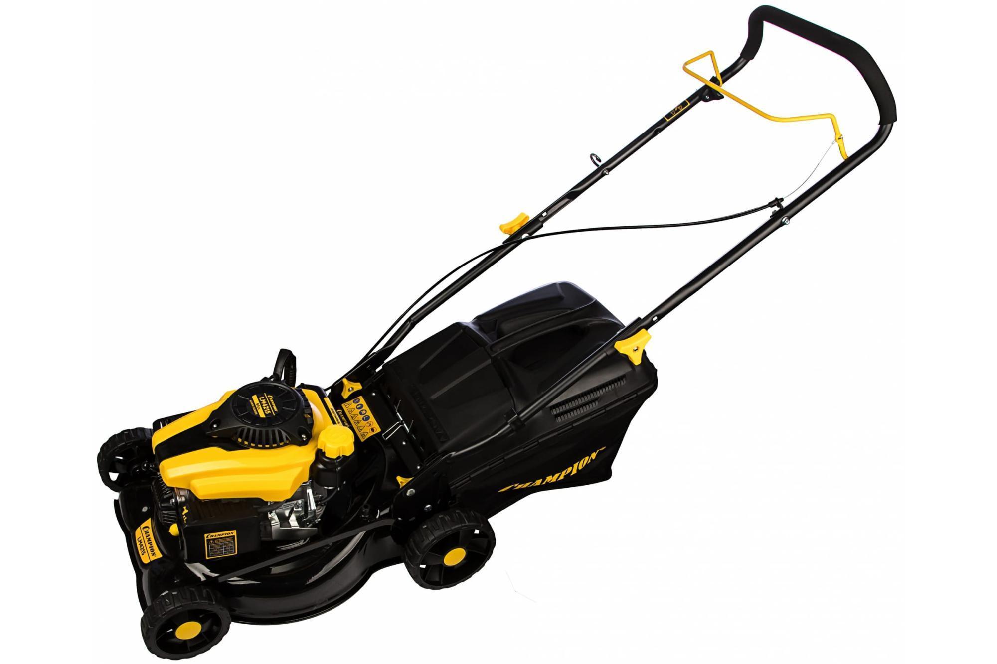 Складная рукоятка облегчает хранение и транспортировку газонокосилки Champion LM4215.