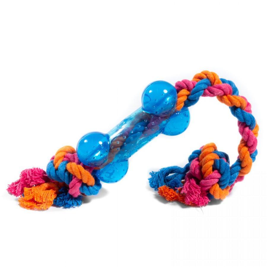 Игрушка для собак "Косточка" изготовлена из термопластичной резины с фактурным узором и дополнена прочной веревкой. Предназначена для игр с собакой любого возраста. Благодаря прочному материалу прослужит максимально долго.