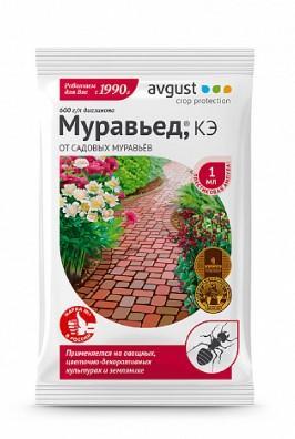 Средство от садовых муравьев Avgust Муравьед, КЭ 1 мл A00074 действенно для овощных, цветочно-декоративных культур и земляники. Не вызывает привыкания у муравьев, безопасен для почвенных бактерий. Защищает растения на срок от трех недель.