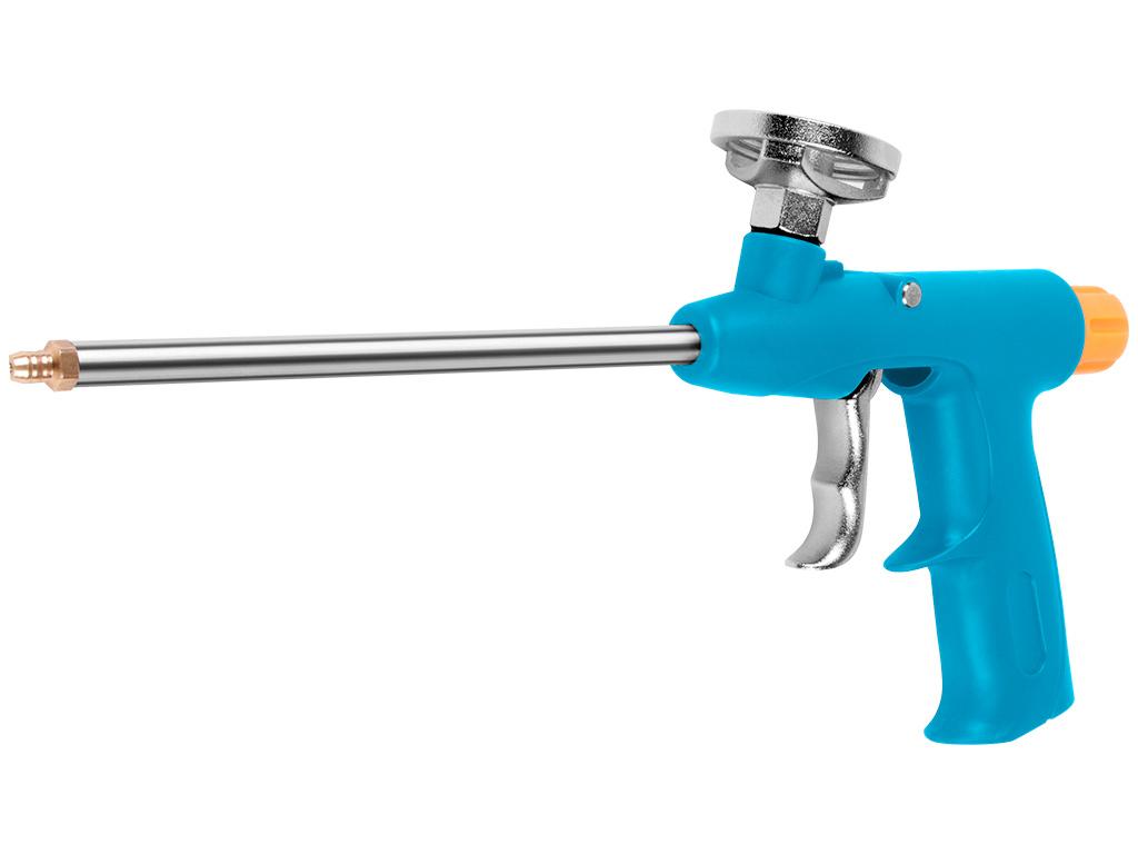 Пистолет для монтажной пены с регулятором 1126. Используются для нанесения полиуретановой пены для изоляции, фиксации и заполнения пустот в работах по монтажу окон, дверей, крыш и других работ, требующих нанесение пены. Сопло с удлинителем позволяет наносить пену в труднодоступных местах. Регулятор подачи пены. Диаметр отверстия сопла 2 мм. Длина насадки 18 см.