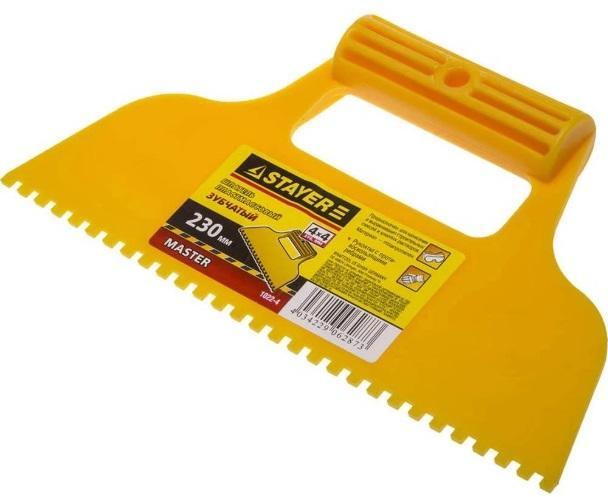 Благодаря зубчатой кромке шпатель идеально подходит для работы со строительными и клеевыми смесями, удобная пластмассовая рукоятка с противоскользящими ребрами создает условия для комфортной работы