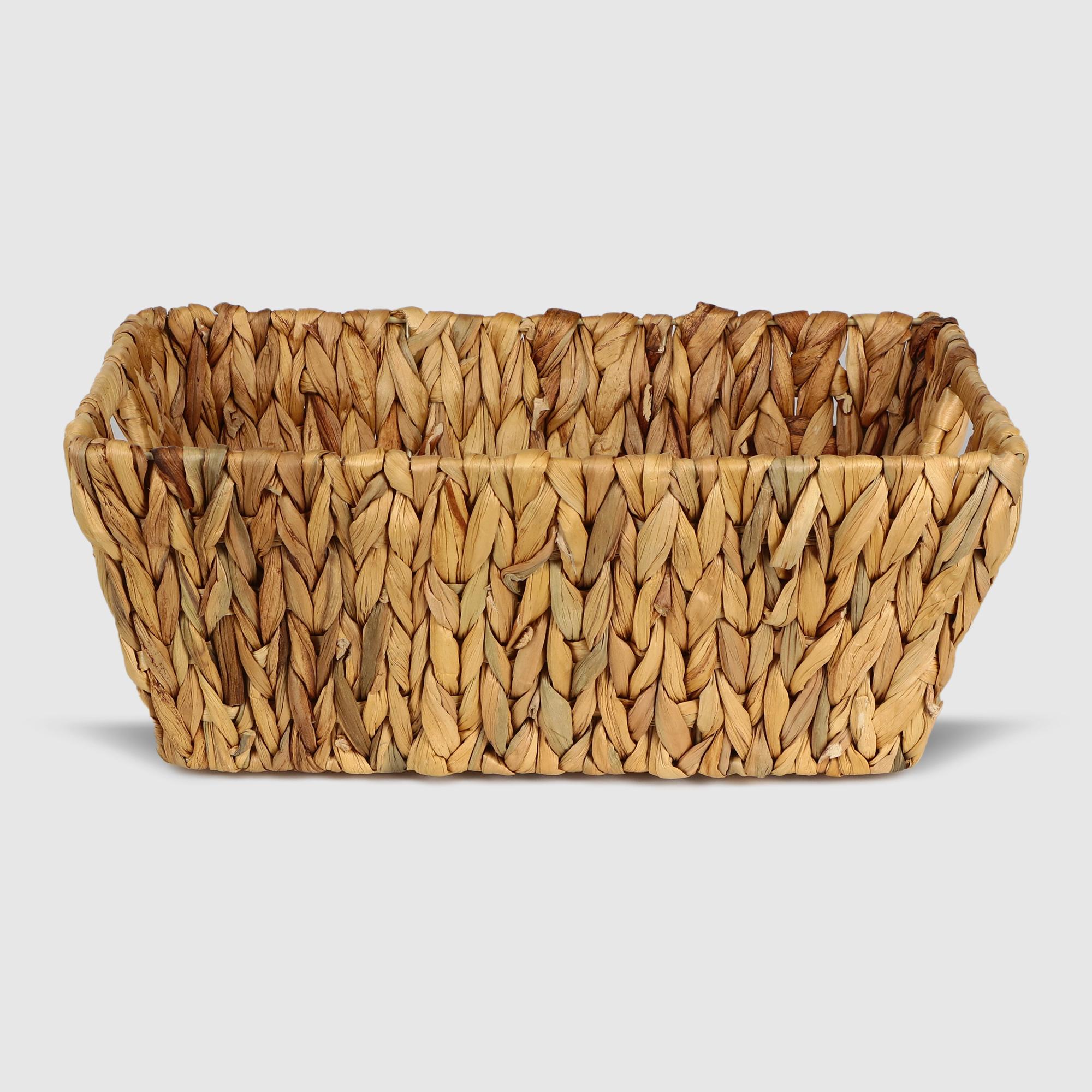 Практичная плетеная корзина для хранения из водного гиацинта вмещает небольшие аксессуары для красоты, письменные или художественные принадлежности или предметы домашнего обихота. Эстетичный минималистический дизайн позволяет данной корзине вписаться в любой интерьер, а ручки для переноски добавляют изделию удобства. Плетеный контейнер подойдет как для личного пользователя, так и в подарок членам семьи или друзьям.