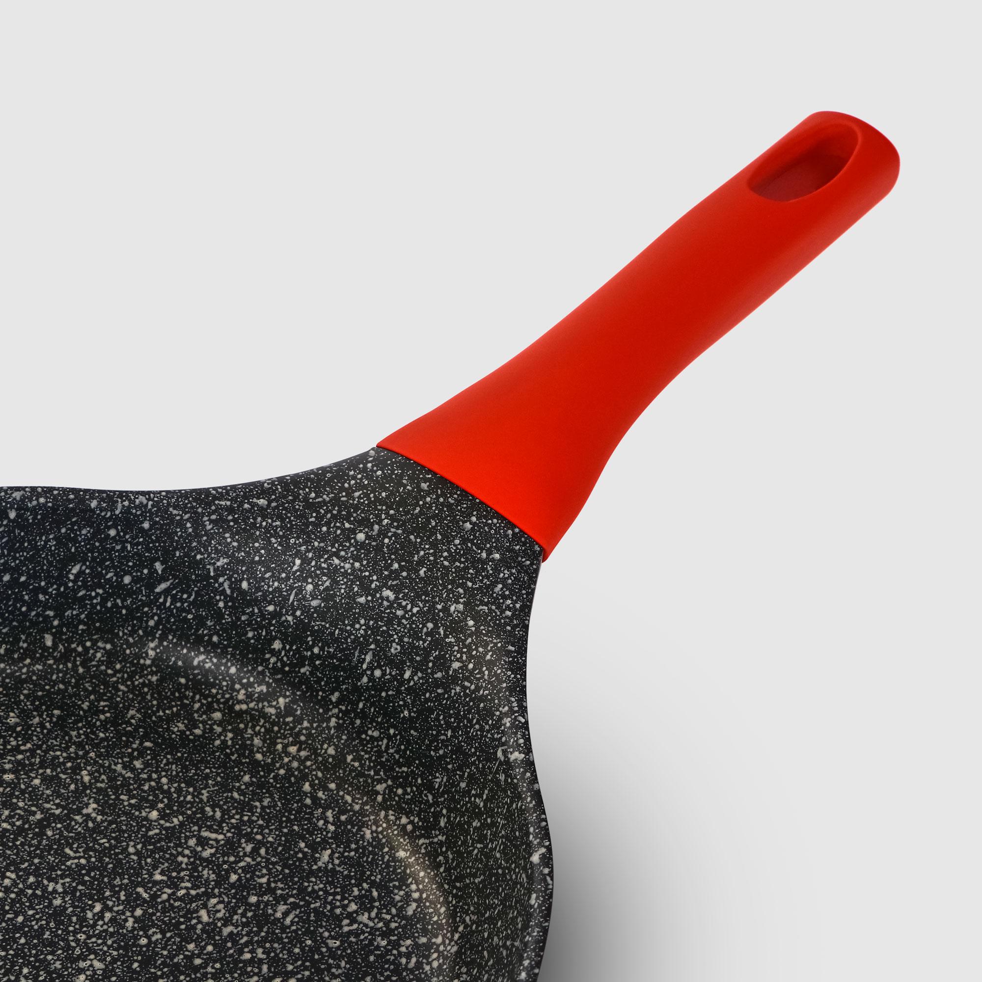 Сковорода бренда Kitchen star из коллекции Alfetta изготовлена в минималистичном стиле из литого алюминия с антипригарным покрытием высочайшего качества. Ярко-красные вставки разнообразят интерьер вашей кухни. Сковорода имеет ферромагнитную пластину, благодаря чему возможно использование на индукционных плитах. Толщина дна в 4,5 мм не позволит вашему блюду пригореть и сохранит первоначальный внешний вид посуды без деформации.Стильные эргономичные бакелитовые ручки с минималистичным дизайном в ярком цвете не нагреваются и удобно лежат в руке