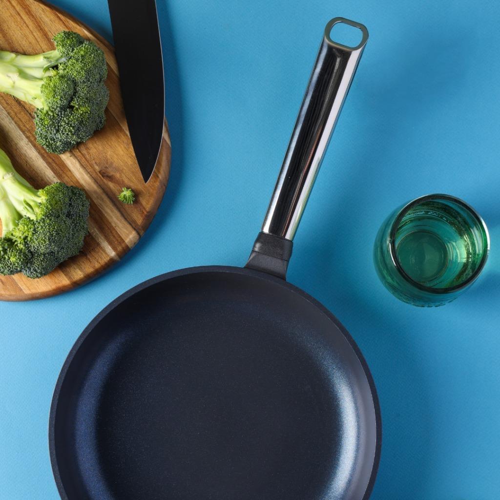 Сковорода бренда Kitchenstar из коллекции Diamante изготовлена в минималистичном стиле из литого алюминия с антипригарным алмазным покрытием высочайшего качества. Покрытие, каменное внутри и лаковое снаружи, устойчиво к царапинам и обладает долговечностью и антипригарными свойствами. Рекомендуется ручная мойка для долгого срока службы, но допускается и мытье в посудочной машине. Надежные прочные ручки слиты с посудой, а антискользящие силиконовые накладки в комплекте защитят руки от ожогов. Сковорода Diamante подойдет для всех типов плит, включая электрическую, керамическую, газовую и индукционную.
