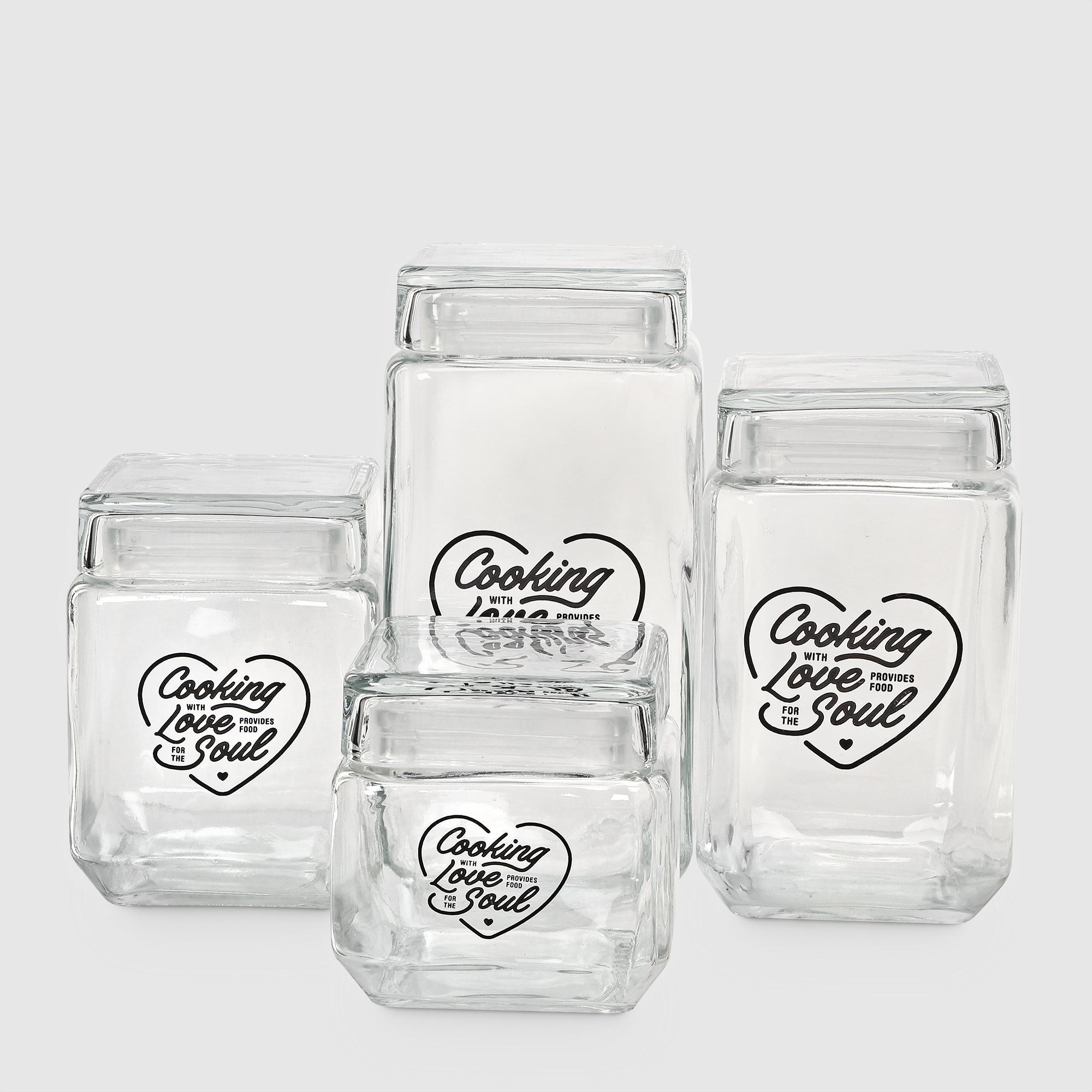 Набор банок можно использовать для смешивания эфирных масел, косметики, специй, приправ, меда, варенья, йогуртниц, продуктов питания, для украшения интерьера и т.д. Баночки из стекла не впитывют запахов и вкусов и не мутнеют со временем. Набор банок подходит для многократного использования. Контейнеры для еды, в которых удобно хранить крупы, специи, макаронные изделия, сахар, муку, бобовые, выполнены в едином современном стиле. Набор банок 4 ШТ 2/ 1.7/ 1.25/ 0.8Л