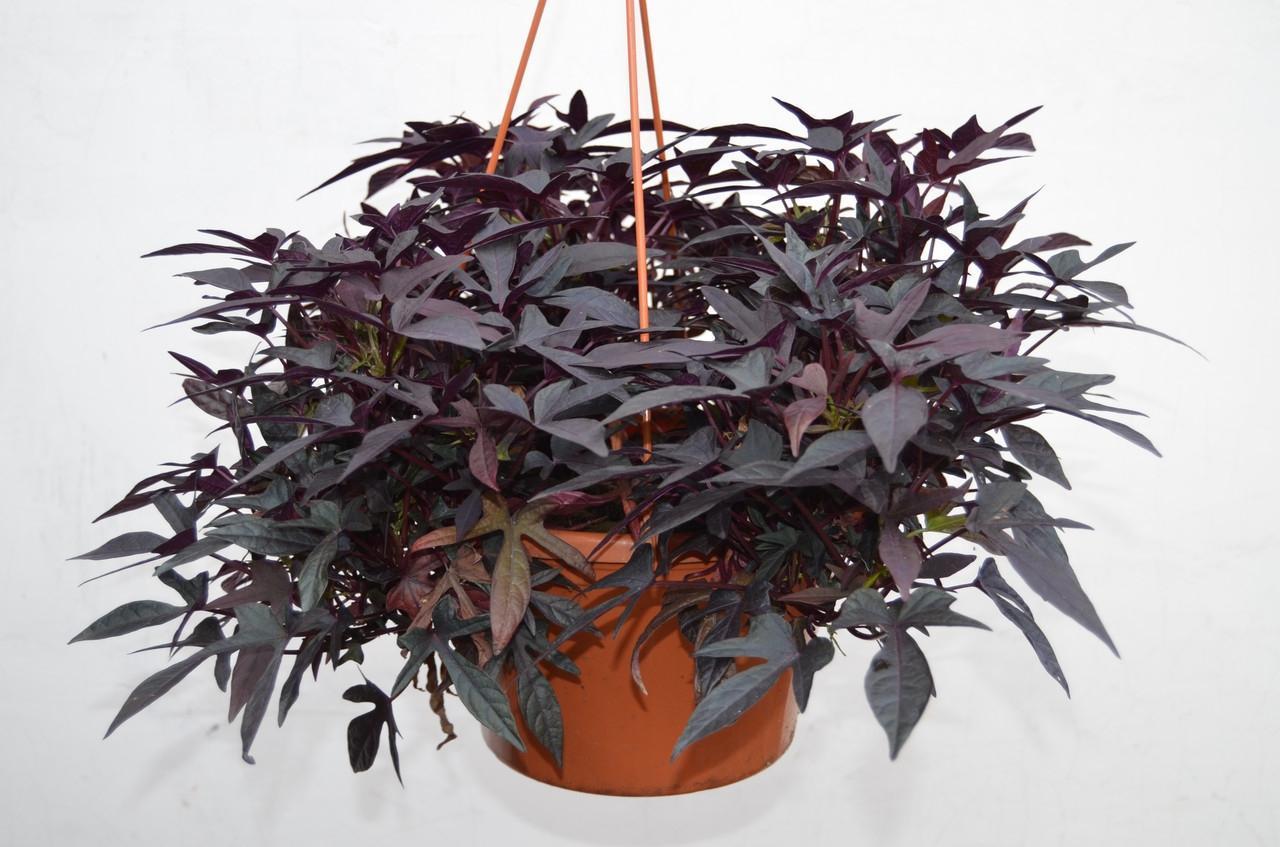 Ипомея батат - ампельное растение c красивыми зелеными, желтыми или бордовыми листьями. Ипомея быстро растет и неприхотлива в уходе. Она родом из Центральной Америки и Мексики, где произрастает около половины всех видов ипомей, поэтому основные ее требования - это тепло и солнце.