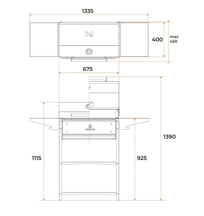 Выдвижной зольник и воздушная заслонка на крышке мангала позволяют регулировать температуру приготовления.