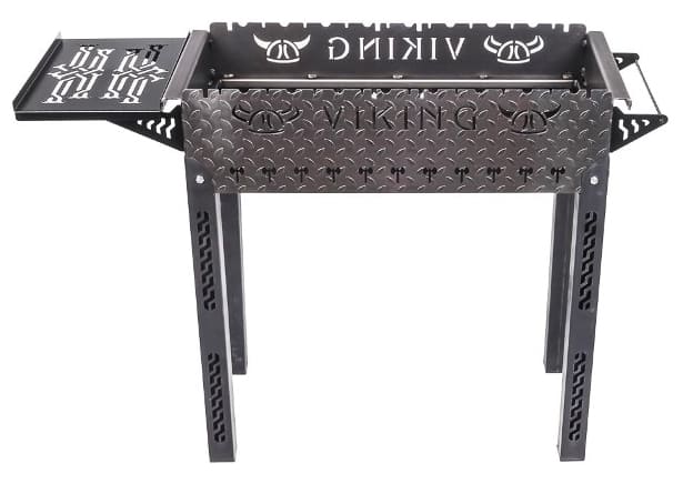 VikinG Black XL — это классический мангал из металла толщиной 4 мм, который предназначен для приготовления деликатесов на дровах или углях. Сборная модель компактна, надежна, мобильна и брутальна. Фактурный рельеф и прорезной логотип подчеркивают эксклюзивность универсальной жаровни. Сталь покрыта термоустойчивой краской, которая защищает конструкцию от коррозии. Ножки с витым узором прикручиваются винтами. Для сборки не нужны дополнительные инструменты. На съемном столе размещают посуду или инструменты. Кочергу и совок можно подвесить на специальную ручку. Подставку для котла и крышку для копчения приобретают отдельно.