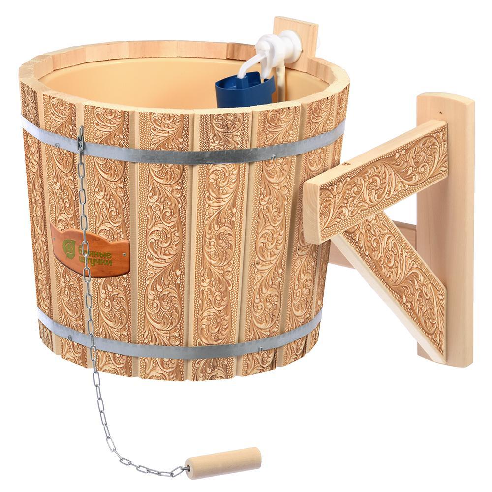 Русский душ Банные Штучки 16 л, липа 33425 - обливное устройство с пластиковой вставкой и наливным клапаном.