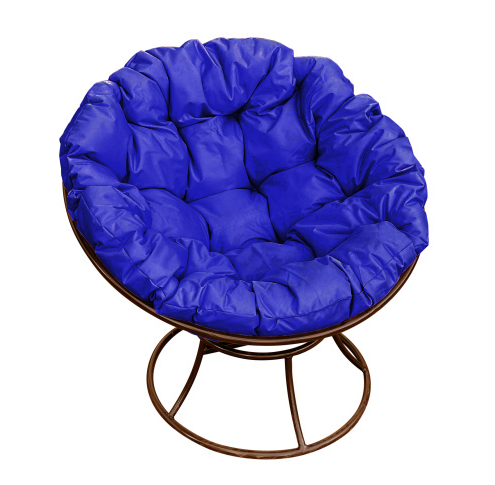 Кресло ПАПАСАН без ротанга коричневое, синяя подушка