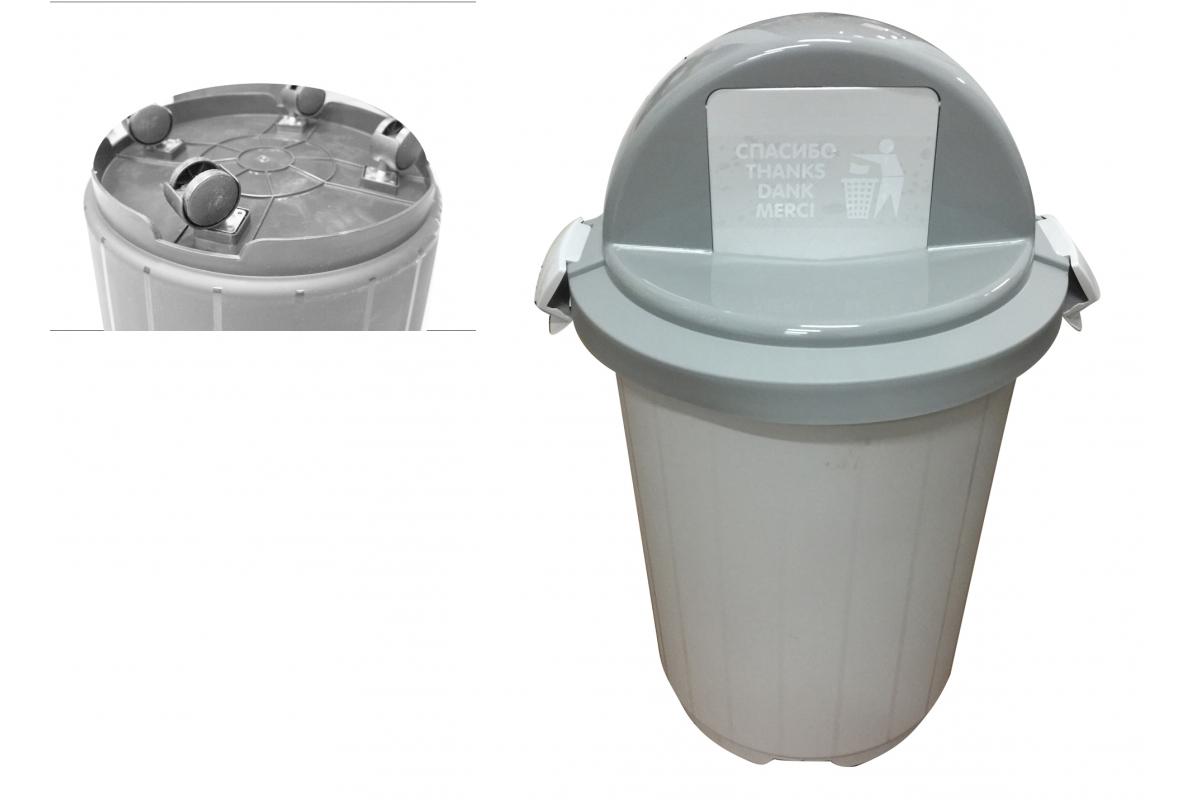 Изготовленный из первичного сырья пластиковый бак объемом 105 литров оснащен крышкой-клапаном и четырьмя колесами. Материал изготовления — пластик — соответствует по составу мировым стандартам качества и безопасности.