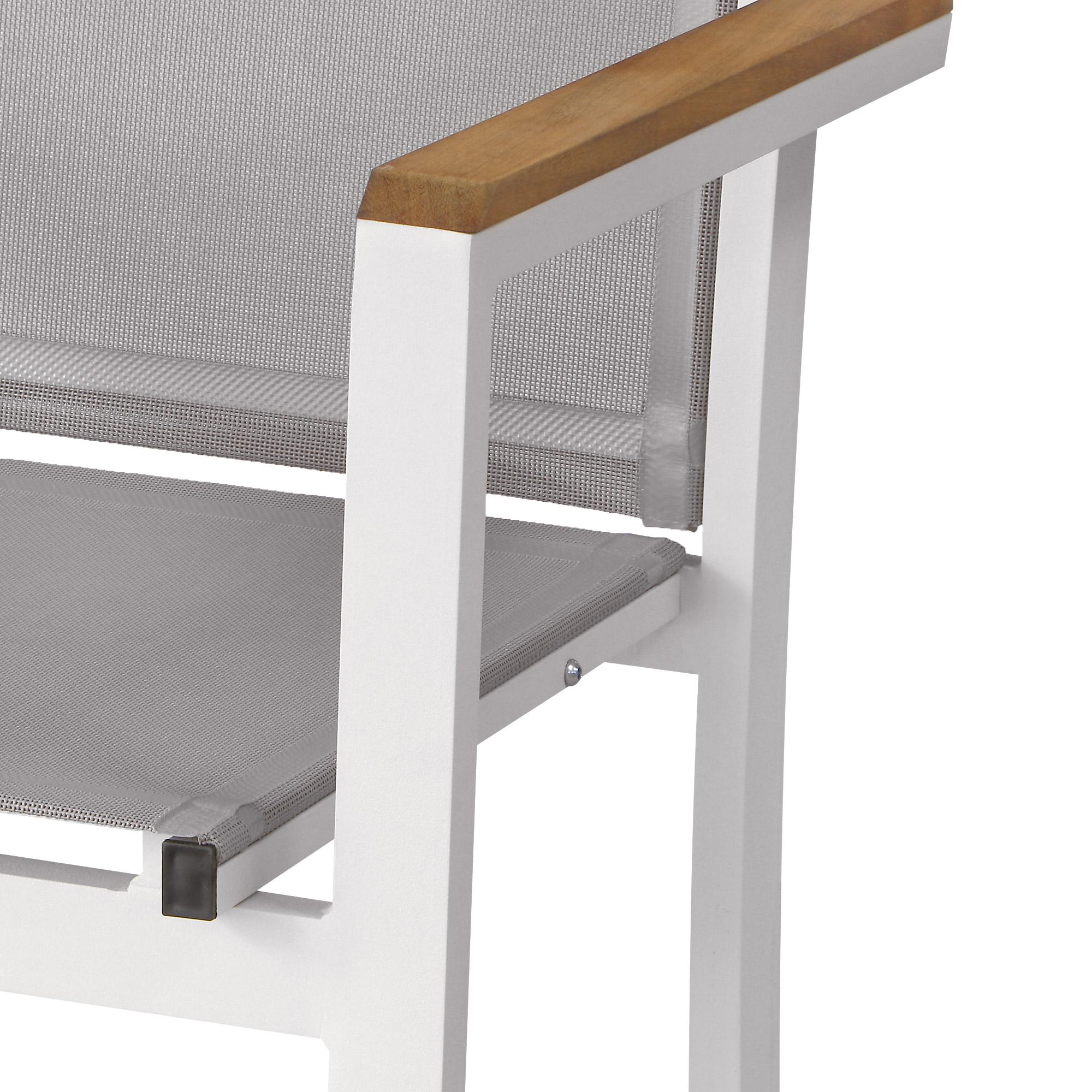 Алюминиевый каркас стола и кресел обеспечивает надежность и долгий срок службы, при этом он легкий и устойчив к коррозии, что делает мебель подходящей для использования на открытом воздухе.