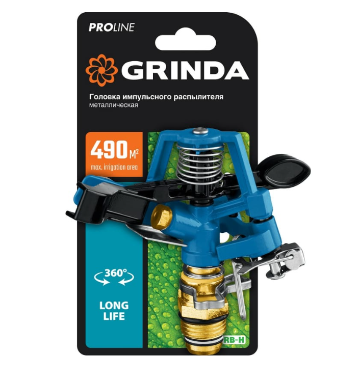 Металлическая головка для импульсного распылителя Grinda PROLine применяется в качестве съемной насадки в системе стационарного полива растений.