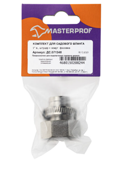 —Комплект для подключения садового шланга 3/4" с внутр. рез. 1" (штуцер + хомут), MP
