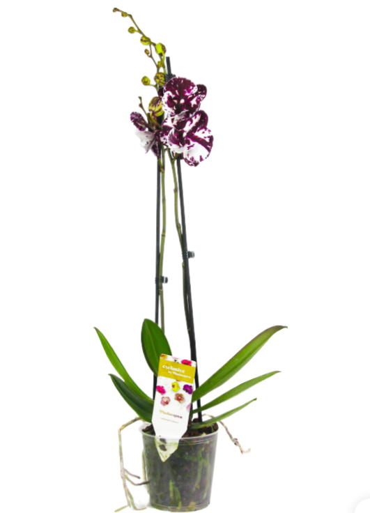 Для орхидеи рекомендуем обеспечить рассеянный, но яркий свет, разместив растение на восточной или западной стороне. Фаленопсис предпочитает комфортный температурный режим от 17 до 25 градусов тепла. Цветок негативно реагирует на резкие изменения температуры и сквозняки. При этом, проветривать комнату с Орхидеей все-таки нужно, но аккуратно. Будет полезно создавать разницу в 5-6 градусов между дневной и ночной температурой, это важно для стимуляции цветения. Специальные условия влажности для Фаленопсиса не нужны, но будет очень полезно протирать листья цветка, защищая их от пыли. Поливают Орхидею примерно раз в неделю, в зависимости от скорости высыхания грунта. Если корни и субстрат высыхают быстро, то можно увеличить регулярность поливов, все рассчитывается индивидуально. В период покоя поливы важно сократить. В качестве подкормки применяют специальные удобрения для Орхидей. Их вносят каждые две недели в период активного роста и раз в месяц в период покоя.