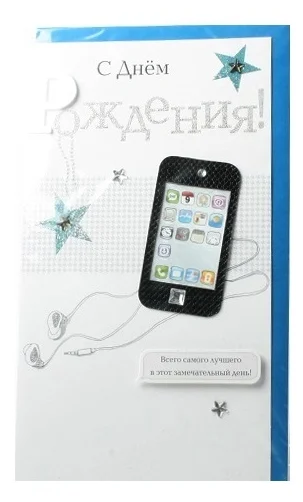 Открытка поздравительная с декоративной отделкой, с более сложной ручной работой и/или более дорогими дополнительными компонентами.С конвертом.