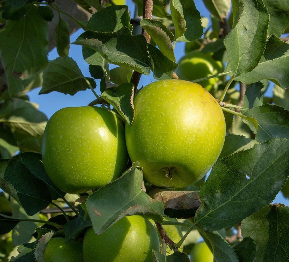 Великолепные характеристики этого сорта сделали его широко известным в сфере садоводства. Зимний срок созревания позволяет лакомиться спелыми плодами Гренни Смит в сентябре-октябре. Крупные насыщенно-зеленые яблоки шаровидной формы прекрасно держатся на дереве, не осыпаясь после созревания. Сочная кисло-сладкая мякоть очень ароматная, имеет кремовый оттенок. Плодовая зрелость наступает на 2-3 год и длится до 8-летнего возраста. Пик урожайности приходится на 5-7 год после посадки (до 15 кг с растения).