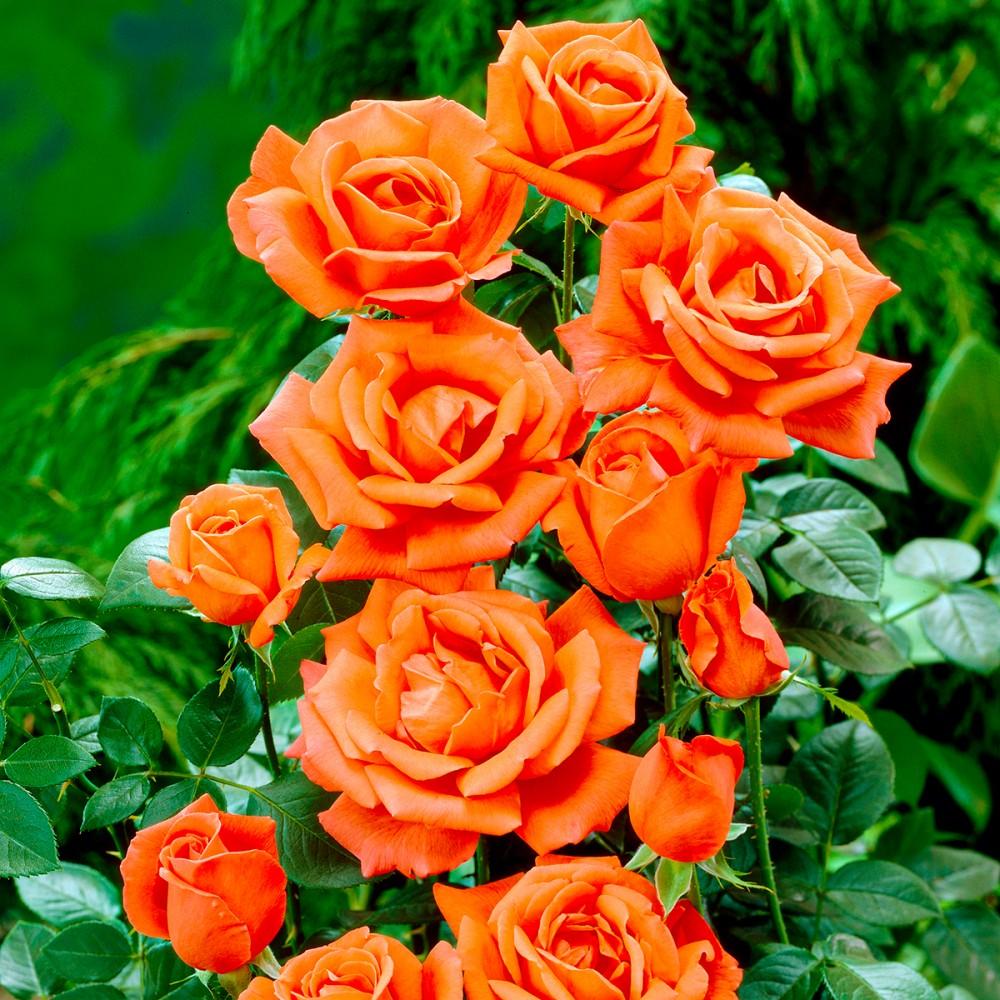 Цветки ярко-оранжевые с рифлеными краями лепестков. Куст высотой 80-90 см. Устойчивость к болезням средняя. Цветки устойчивы к дождю.