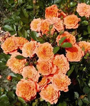 Роза Нинетта - спиралевидные бутончики, которые дружно раскрываются в розетковидные изящные цветки темно-оранжевого цвета, 4-5 см в диаметре. Это классическая роза патио с многочисленными цветоносными побегами, которые образуют компактный ветвистый куст с густой глянцевой оливково-зеленой листвой. Сорт идеален для переднего плана и в качестве контейнерной культуры. Самоочищается после цветения: цветок отваливается вместе с плодоножкой.