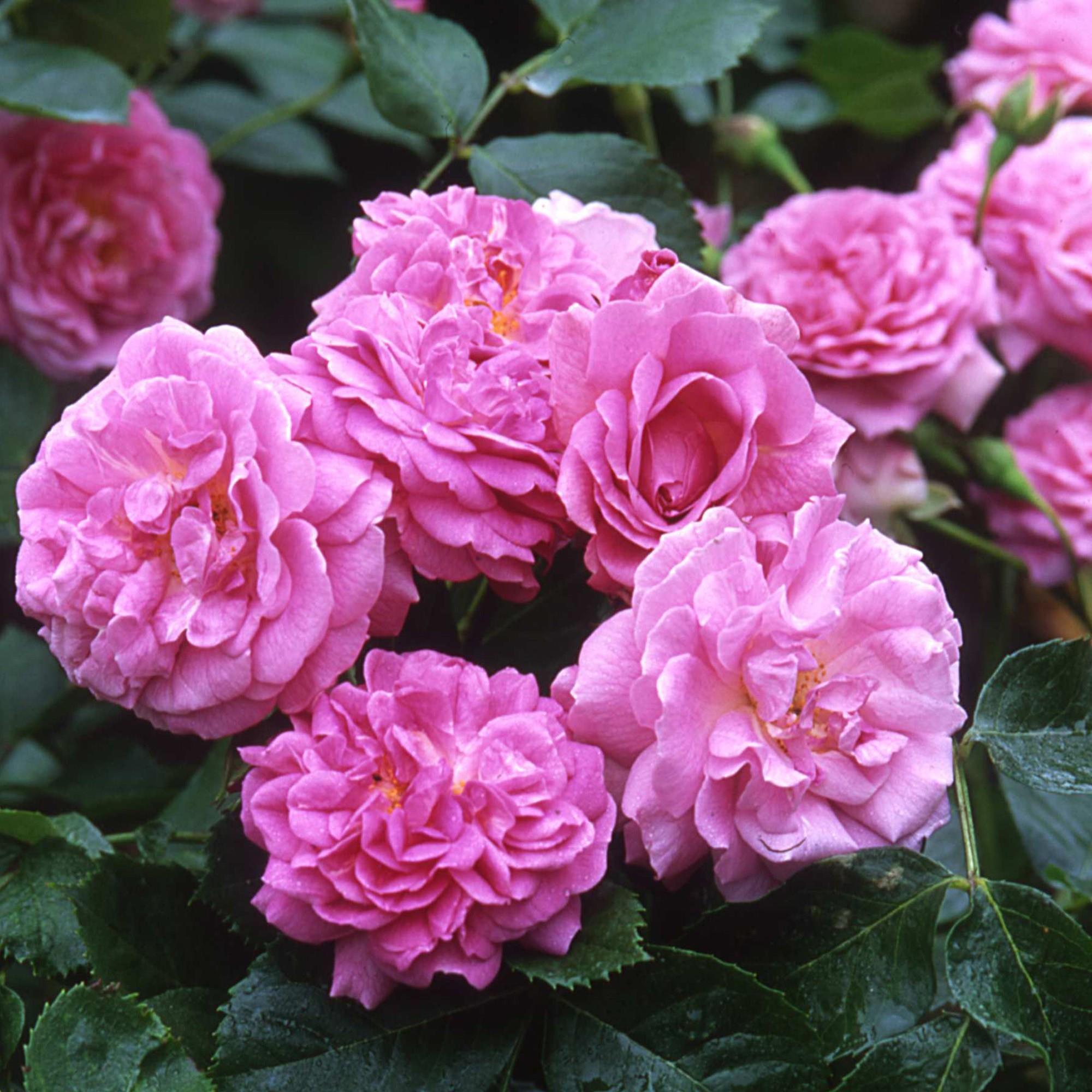 Цветки сиренево-розовые, ближе к розовому, чем лавандовому. Цветение махровыми (20-25 лепестков),  диаметром 7-8 см, в форме розетки цветками, собранными в грозди. Обильно цветёт ранним летом, и затем к осени. Цветы ароматные, имеют легкий сладкий запах. Куст сильнорослый, быстрорастущий, высотой 100-125 см, шириной до 100 см. Побеги гибкие, нависающие. Листва темно-зеленая, кожистая, глянцевая, устойчивая к заболеваниям. Подробнее: https://rastimsad.by/p173508128-roza-pletistaya-lavender.html