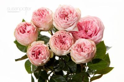 Цветки нежного розового оттенка, на крайних лепестках цвет может быть практически белым. По насыщенности это бледный сорт. Бутоны обладают шаровидной формой. Цветки могут достигать в диаметре 7 см, это средние по размеру розы, густомахровые, с 50 лепестками.