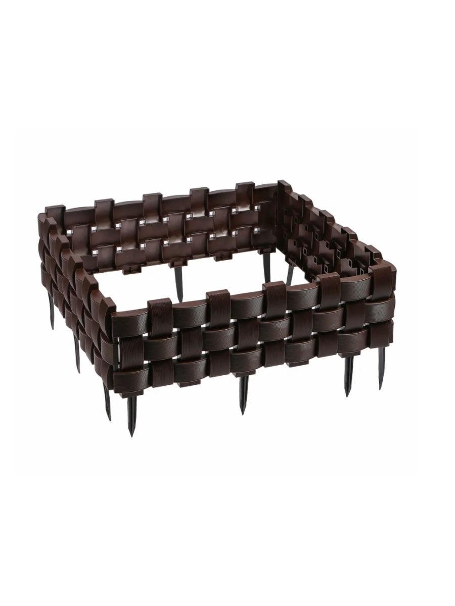 Декоративное ограждение «Плетёнка» отличается колоритным дизайном и рельефной фактурой. Ограждение выполнено из долговечного морозостойкого пластика коричневого цвета, устойчивого к воздействию солнца и воды, не выделяющего вредных веществ и не требующего никакого ухода. Состоит из гибких 60-сантиметровые секции, которые легко стыкуются друг с другом и надёжно фиксируются в грунте. Благодаря пластичности составных сегментов, несколько упаковок «Плетёнки» без труда превратятся в оригинальное декоративное ограждение любой формы и протяжённости. Его можно использовать для ограждения клумб, цветников или грядок, для оформления зелёных насаждений или зонирования приусадебного пространства.