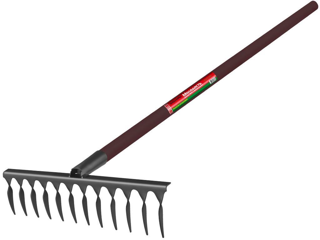 Грабли "Молодость моя" сделаны из стали с защитным покрытием и оборудованы витыми зубьями для более эффективной работы в саду или на участке. Вот их характеристики:
