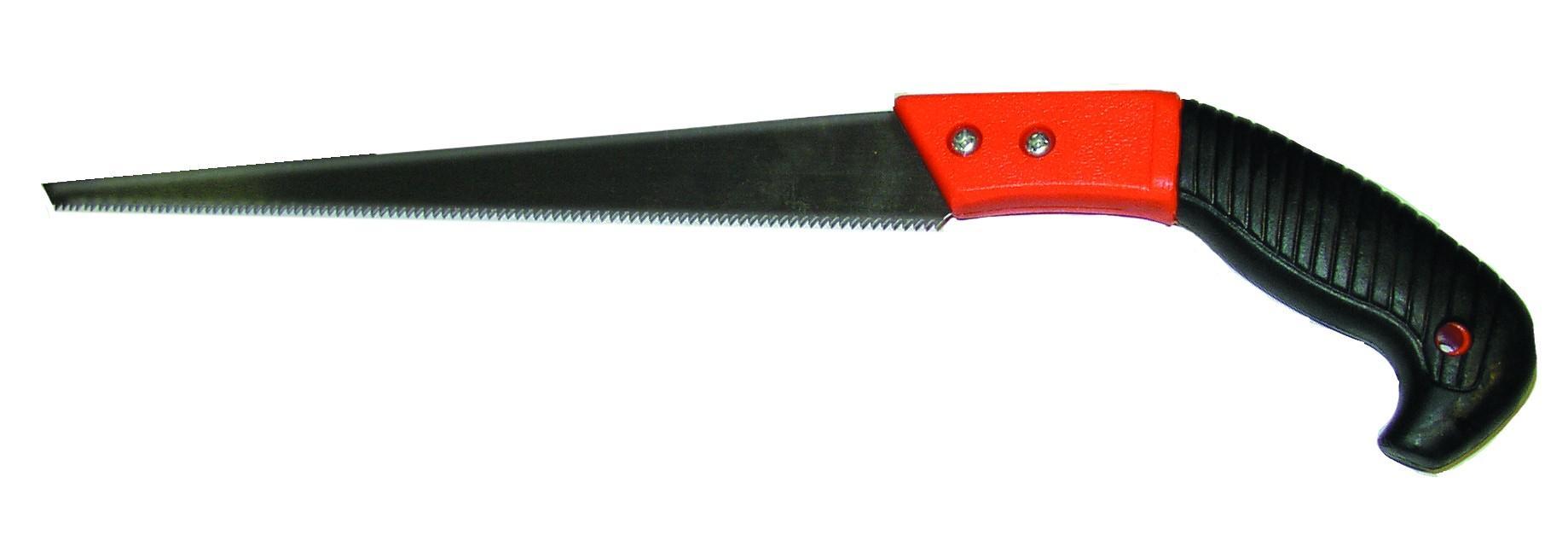 Ножовка универсальная: для продольного и поперечного распиливания дерева, пластика и других, аналогичных по степени плотности и вязкости материалов. Полотно ножовки разведено, заточено, имеет защитное покрытие. Изготовлено из инструментальной легированной стали. Ручка изготовлена из ударопрочного пластика и приспособлена для надежного захвата. Для подрезания веток и формирования кроны деревьев и кустарников. Двухкомпонентная эргономичная ручка с противоскользящим эффектом. Прямое лезвие. Закаленный зуб с трехсторонней заточкой. Пластиковые ножны с подвесом.