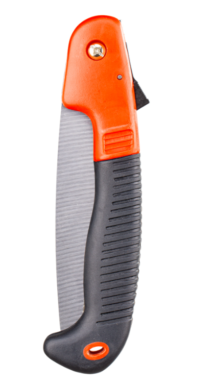 Ножовка складная для любой древесины FINLAND 2337 Садовая пила ручная прекрасно подойдет для обрезки небольших веток, распила досок, реек, бруса, осб, дсп, мдф, хдф. Ножовка садовая с закаленными зубьями и трехгранной заточкой прекрасно справится с побегами яблони, груши и даже ягодных кустарников. Лезвием, длиной 170 мм, будет удобно работать в гуще кроны. Ножовка по дереву подойдет для любых типов спилов. Полотно ножовки выполнено из стали 65Mn , твердостью 47-49 HRC. Рукоятка с прорезиненными накладками и специальными бороздками помогает не травмировать кожу и уберечь пользователя от выскальзывания пилы из руки.