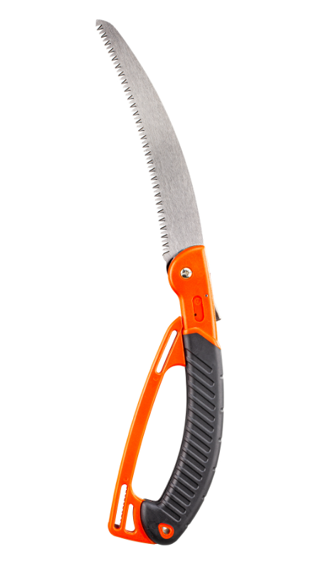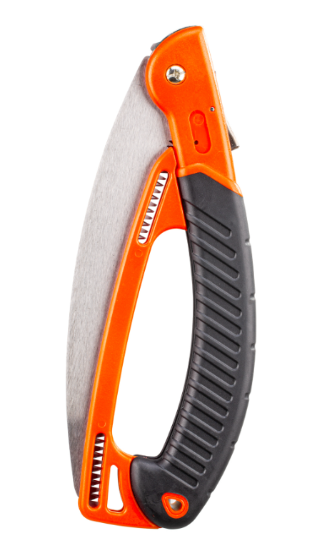 Длина лезвия 240мм. Полотно - сталь 65Mn. Калёный зуб. Твёрдость 47-49 HRC. Трёхгранная заточка. Универсальный рез 7-8 TPI. Прочный корпус из ABS пластика. Эргономичная рукоятка с покрытием из термопластичной резины TPR. Фиксатор-замок лезвия.