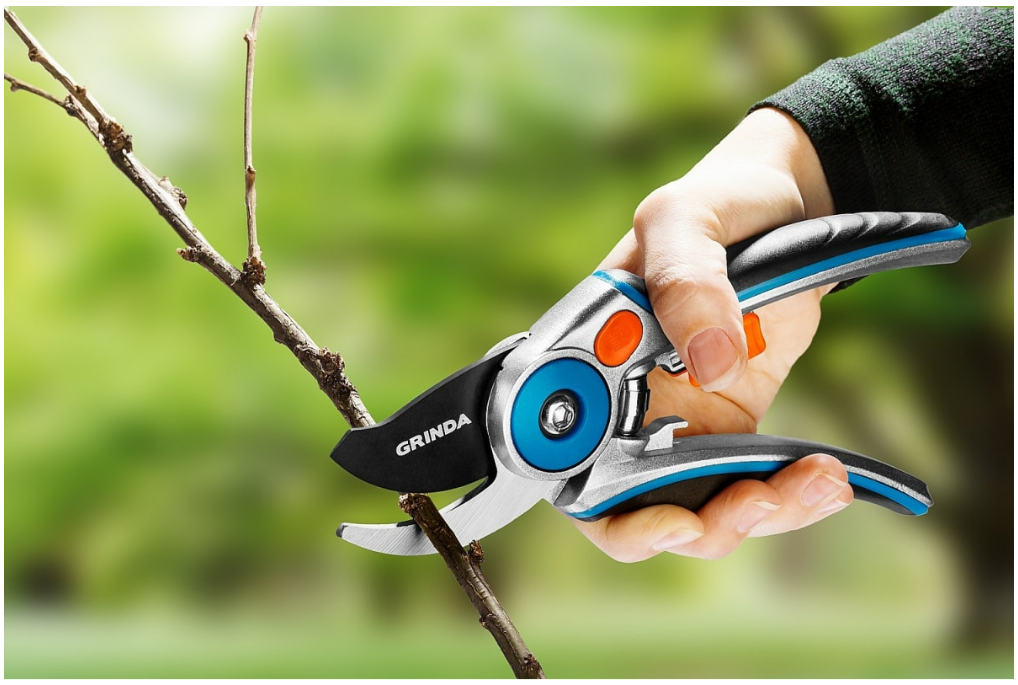 Плоскостной секатор Grinda PRO Line 423429 используется для обрезки веток и стеблей растений.